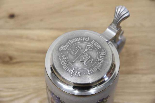 Münchenミュンヘンの老舗醸造所アウグスティナー-ブロイの蓋付き陶器製のビアマグです。バイエルン州の州都ミュンヘンと言えば、世界最大規模のビールの祭典、オクトーバーフェストが行われることでも有名な街ですね。初回はバイエルン王子ルードヴィヒ1世と王女テレーゼの結婚のお祝いとして開催されたのが始まりだったそうですよ。