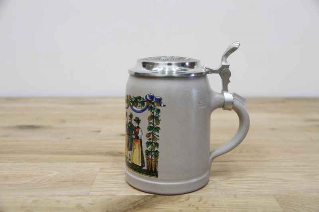 ヨーロッパでペストが大流行した際に生まれたといわれている蓋付きマグ。ハエがペスト菌を媒介するという説があり、ビールを飲んでいる最中にハエが入らないようにという理由から作られたそうです。蓋や親指で開け閉めできるような形状になっています。