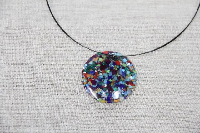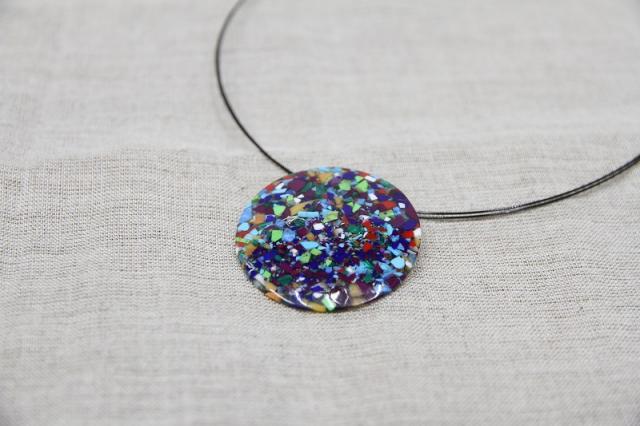 モザイクタイルを切り取ったようなとても特徴的な、レジンで出来たトップデザイン。個性派さんにオススメ。