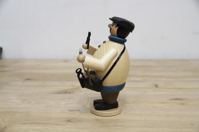 ドイツKuhnert社のパイプ人形、煙だし人形と呼ばれたりもします。まんまるな身体が愛嬌のある電気工事士のお兄さん。いろんな道具を抱えています。