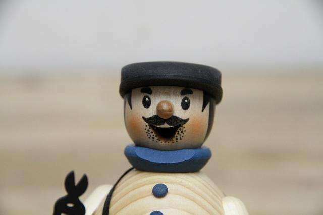 胴体と足の部分が分解できる仕組みになっていて、コーン型のお香を置いて焚くと、おじさんの口からゆっくりと煙が出てくる、ドイツの伝統的な木製のお人形です。全てのパーツは熟練の職人によって一つ一つ丁寧に作られています。専用のBOXも付属しており、ご自分や家族、友人などの職業に合わせてのギフトもオススメです。