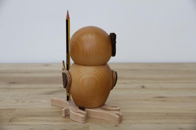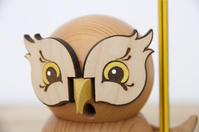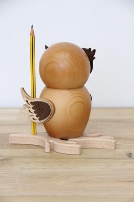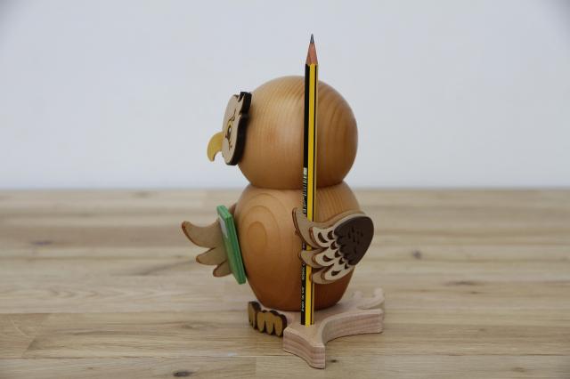 ドイツKuhnert社のパイプ人形、煙だし人形と呼ばれたりもします。鉛筆と本を持った、生徒のフクロウです。木をイメージした土台と足の部分が分解できる仕組みになっていて、コーン型のお香を置いて焚くと、フクロウの口からゆっくりと煙が出てくる、ドイツの伝統的な木製のお人形です。全てのパーツは熟練の職人によって一つ一つ丁寧に作られています。専用のBOXも付属しており、ご自分や家族、友人などの職業に合わせてのギフトもオススメです。