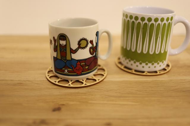 リトアニア製の木製コースター。天然木のあたたかみある白樺のコースターです。コースターとしてお使いにならない時は、花瓶の下に敷いたり、壁や天井から吊るしてオーナメントとして使うとユラユラ揺れて癒されるインテリアにもなります。