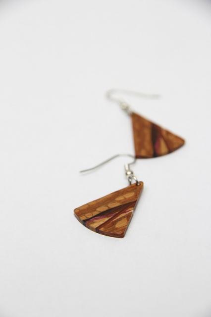 1979年創業アメリカのクラフトメーカー“davin&kesler”のピアス。木が本来持つ色や木目を生かした組木デザインは非常に細やかで、しなやかな曲線も大変美しいです。木目の落ち着いた雰囲気は、どんなテイストのファッションにも合わせやすそうです。