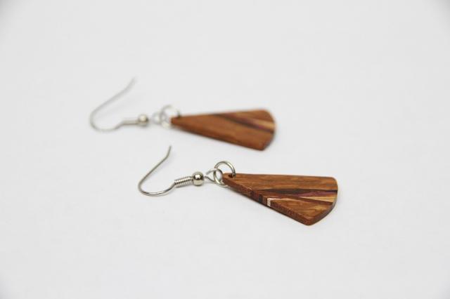 1979年創業アメリカのクラフトメーカー“davin&kesler”のピアス。木が本来持つ色や木目を生かした組木デザインは非常に細やかで、しなやかな曲線も大変美しいです。木目の落ち着いた雰囲気は、どんなテイストのファッションにも合わせやすそうです。