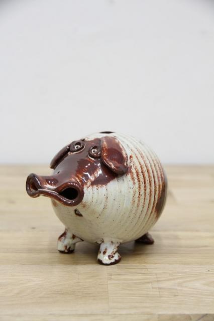 ドイツから届いたブタの貯金箱。陶器製です。フニャンと曲げられれた鼻がなんとも特徴あるデザインになっていますね。取り出し口はありませんので、お金が貯まったら・・・、そのままにしましょう:)