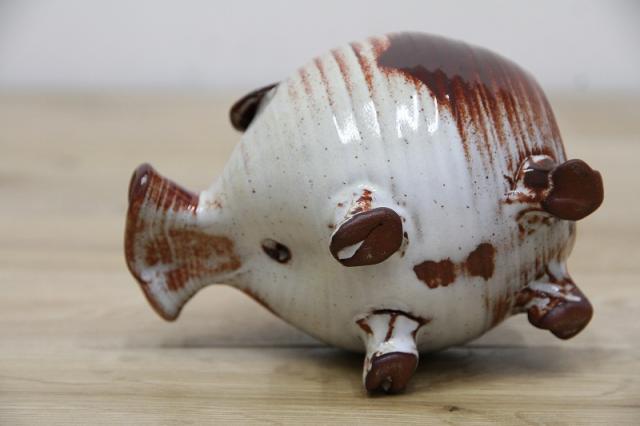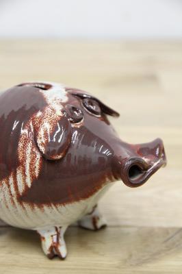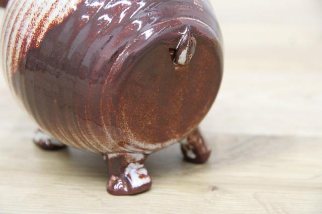 ドイツから届いたブタの貯金箱。陶器製です。フニャンと曲げられれた鼻がなんとも特徴あるデザインになっていますね。取り出し口はありませんので、お金が貯まったら・・・、そのままにしましょう:)