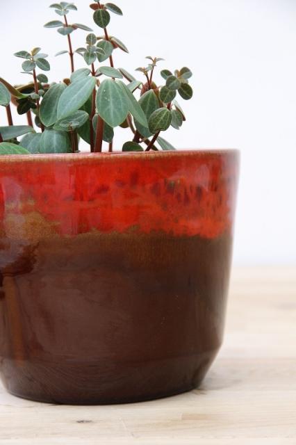 ドイツ製ヴィンテージ、1960-70年代製の陶器製フラワーポットです。FatLavaデザインらしい艶感と、そして茶色と赤が混じり合った釉薬使いが印象的。赤が強くないので主張しすぎず、使いやすいフラワーポットだと思います。