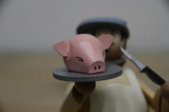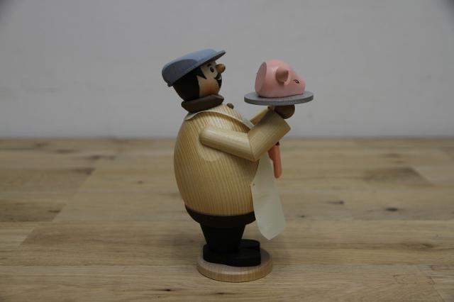ドイツKuhnert社のパイプ人形、煙だし人形と呼ばれたりもします。豚の頭を掲げるお肉屋さんです。