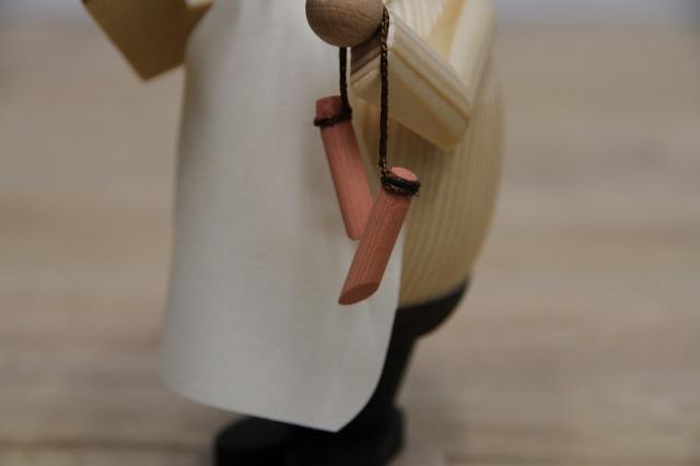 胴体と足の部分が分解できる仕組みになっていて、コーン型のお香を置いて焚くと、おじさんの口からゆっくりと煙が出てくる、ドイツの伝統的な木製のお人形です。全てのパーツは熟練の職人によって一つ一つ丁寧に作られています。専用のBOXも付属しており、ご自分や家族、友人などの職業に合わせてのギフトもオススメです。