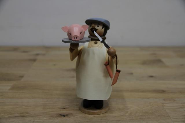 ドイツKuhnert社のパイプ人形、煙だし人形と呼ばれたりもします。豚の頭を掲げるお肉屋さんです。