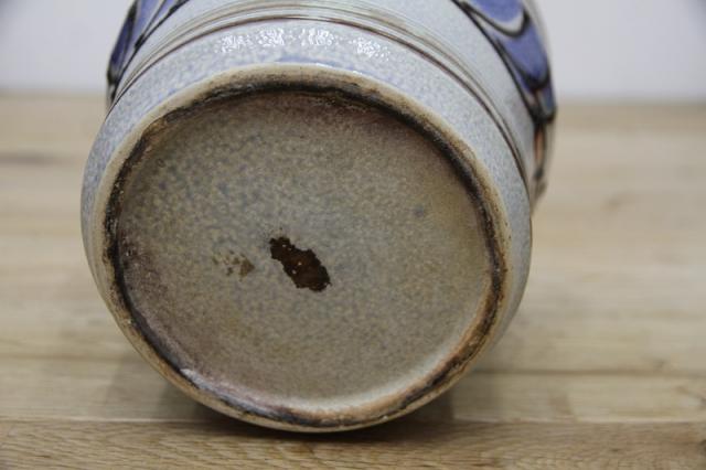 ドイツ製ヴィンテージのレトロなフラワーポット。陶器製です。ブルーとオレンジの釉薬の色が映えますね。お好きなインドアグリーンと合わせてインテリアとしてお楽しみください!