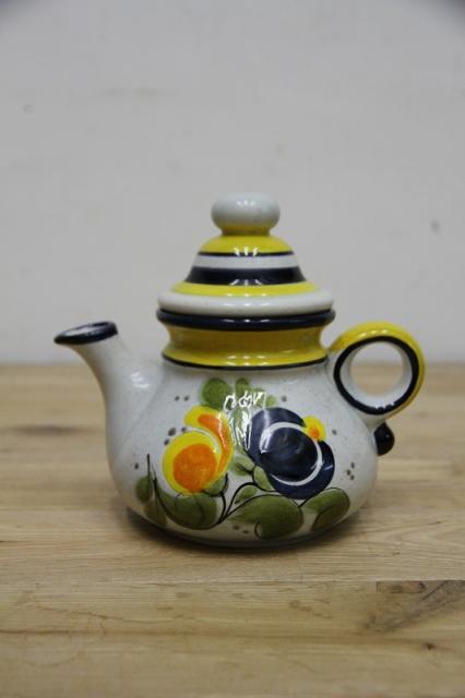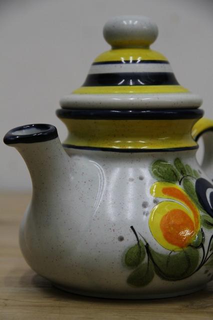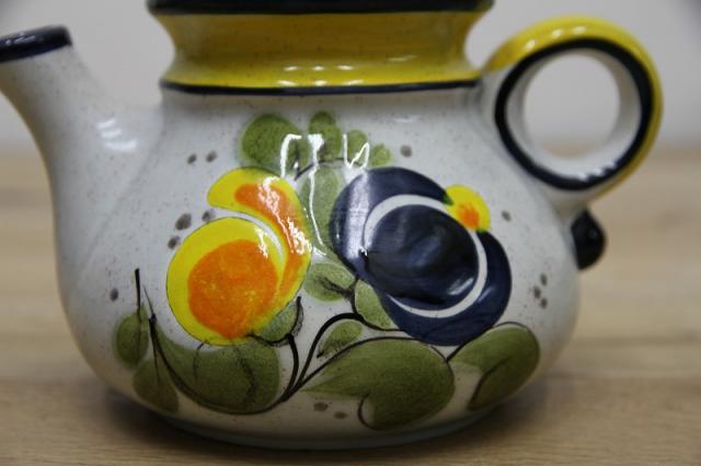ドイツから届いたコーヒーポット。ブルー、イエロー、グリーンの色使いが目を惹きます。ハンドペイントによるフラワーモチーフは大変美しい一点です。食卓を華やかに&インテリアとして飾って楽しむにも素敵なアイテムです。