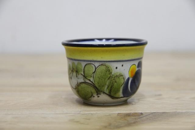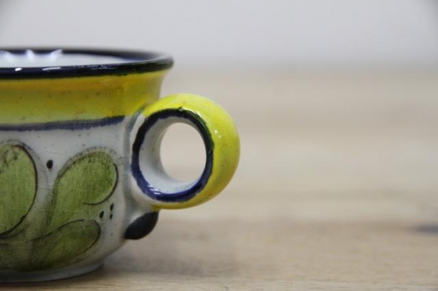 ドイツから届いた小さくてかわいいマグカップ。ブルー、イエロー、グリーンの色使いが目を惹きます。ハンドペイントによるフラワーモチーフは大変美しい一点です。
