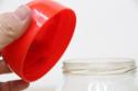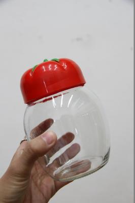 ドイツから届いた可愛いキャニスター。ガラス瓶にプラスチック製のトマトの蓋というデザイン。レトロ感満載な入れ物です。