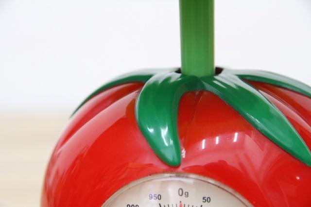 ドイツで見つかったトマトモチーフのキッチンスケールです。なんとも愛らしいデザインで、キッチンが華やぎますね。実際に使用することもできます!