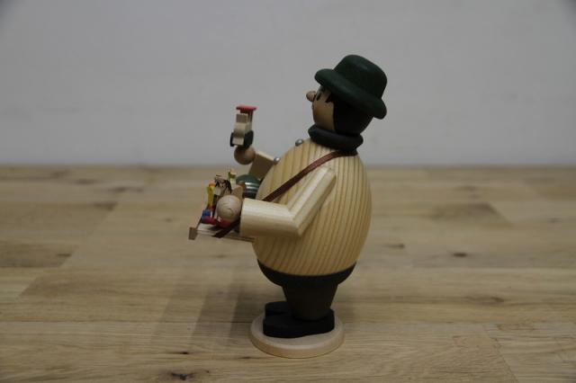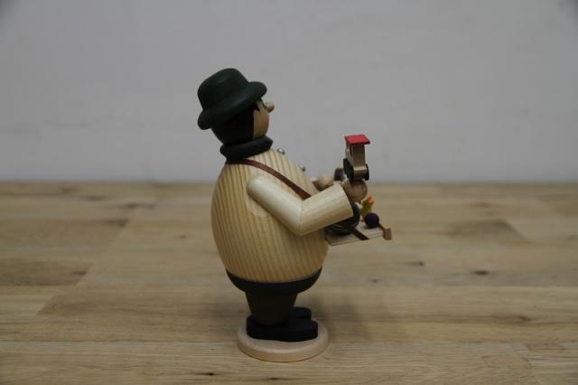 胴体と足の部分が分解できる仕組みになっていて、コーン型のお香を置いて焚くと、おじさんの口からゆっくりと煙が出てくる、ドイツの伝統的な木製のお人形です。全てのパーツは熟練の職人によって一つ一つ丁寧に作られています。専用のBOXも付属しており、ご自分や家族、友人などの職業に合わせてのギフトもオススメです。
