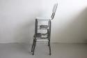 アメリカ買付のメタルステップスツールです。座面下のステップを手前日引き出すと小さな脚立に早変わり。スツールと脚立が一体化した実用的なアイテムです。例えばキッチンに置いて高いところに手を伸ばしたいときのステップ利用はとても便利ですし、他、カウンターやガレージ、お花を置く台としてなど、様々な用途で使える家具です。