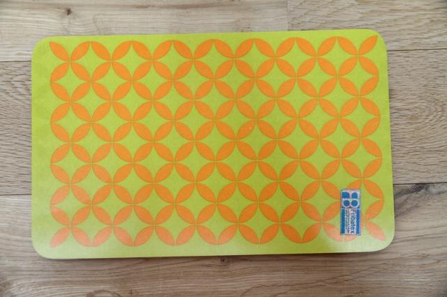 1970年代製の朝食用ボードです。メラミンラミネートされているドイツ製アイテム。パンなどの食品を置いたりコースターとして使ったりと、レトロな彩りを食卓で楽しんでくださいね。