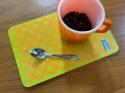 1970年代製の朝食用ボードです。メラミンラミネートされているドイツ製アイテム。パンなどの食品を置いたりコースターとして使ったりと、レトロな彩りを食卓で楽しんでくださいね。