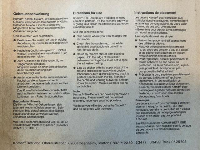 キッチンやバスルームを模様替えするための10ピース入りタイルデカールセットは、1970年代製のヴィンテージです。中にはシールを張り付けるときに使えるツールも入っているようです。説明書のデザインもとても可愛く、このまま飾って集めたくもなります。プチリメイク&DIYアイテムして楽しんでください♪