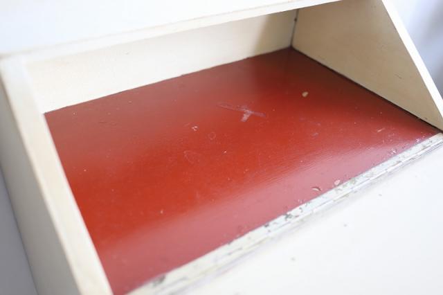 デンマークで見つけたチェスト。上段の扉を手前に引っ張ると大きな収納スペース、そして引き出し収納が3段というデザイン。赤と白のカラーペイントがどこか懐かしいようなレトロ感ある仕上げの可愛い家具です。