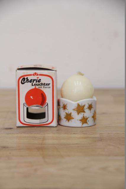 1970年代ボール型のキャンドル付きキャンドルホルダーが見つかりました。陶器製です。ただただ愛らしいデザイン♪ オリジナルの箱と一緒に綺麗に残っています。