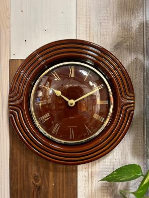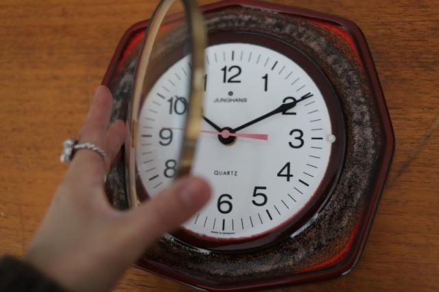 ドイツ製ヴィンテージの陶器製掛時計です。FatLavaテイストの強いレッドとブラウンの色合いがとっても引き立つデザインです。