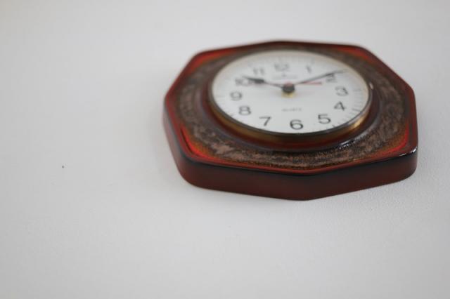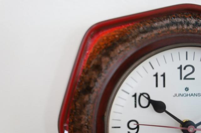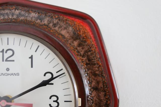 ドイツ製ヴィンテージの陶器製掛時計です。FatLavaテイストの強いレッドとブラウンの色合いがとっても引き立つデザインです。