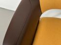 デンマーク買付便のチェアです。レトロカラーのファブリックとフェイクレザーの張り地はオリジナルカラーのままで全張替え済。大事に使っていただきながら新たなエイジングされていく様を楽しんでいただけたらと思います。