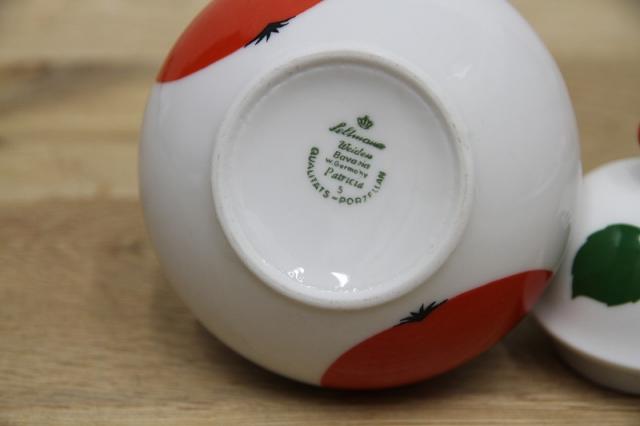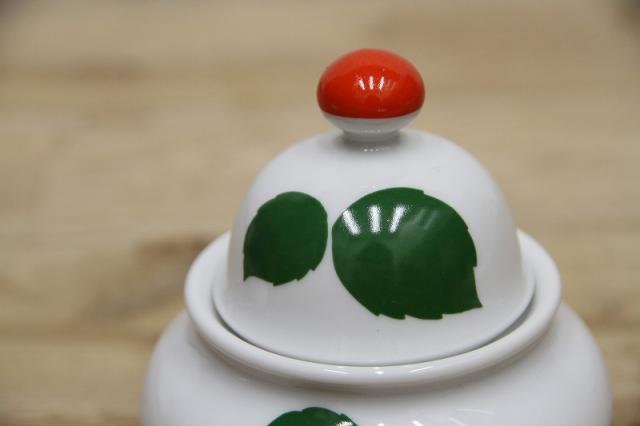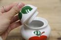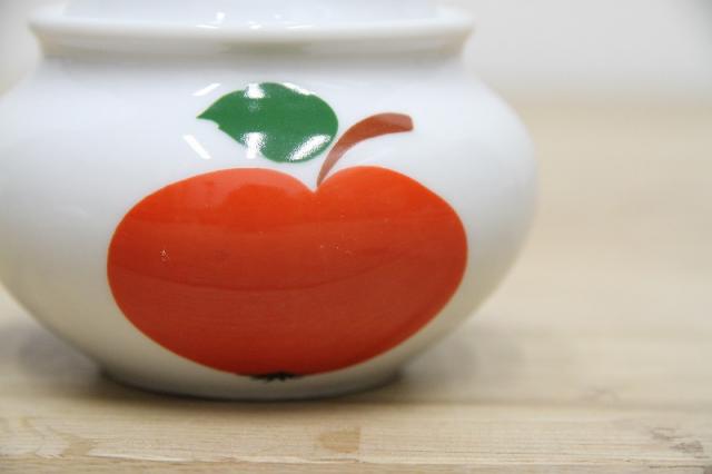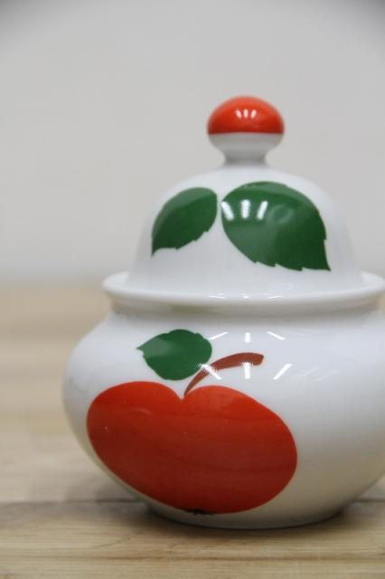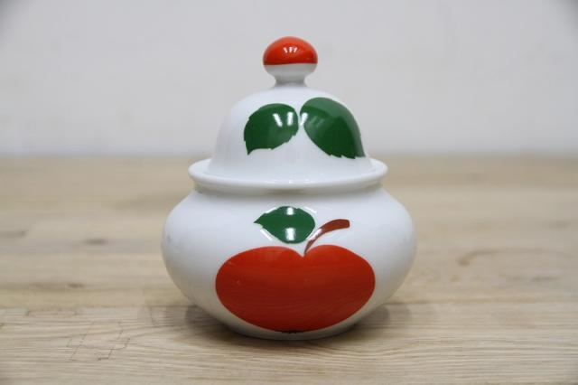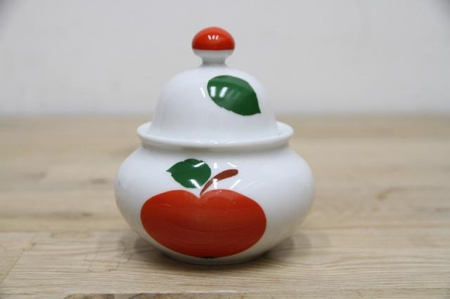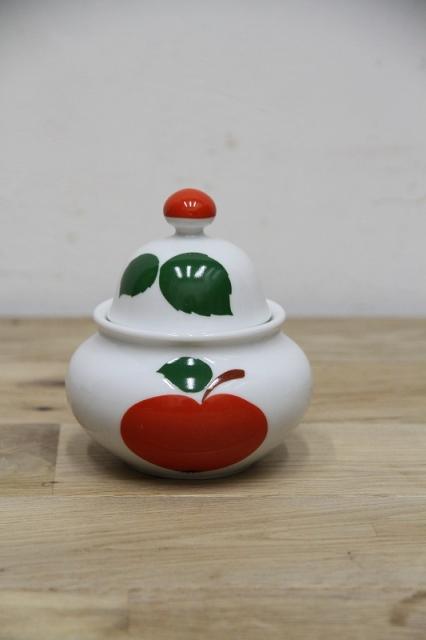 1910年創業Seltmann Weiden社のシュガーポット。テーブルウェアを製造し続けているドイツでも大きな陶磁器製造会社のひとつでもあります。インパクトのある真ん丸なりんごプリントが魅力的なデザインです。