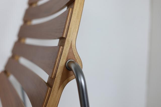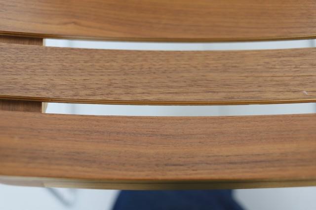 北欧デンマーク買付便のプライウッドチェア。薄くスライスされた木の層の美しさと、緩やかな曲線が目にとまります。脚はスチール製で全体的に軽やかな印象のチェアです。