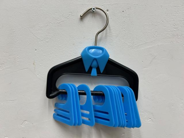 ネクタイ用のヴィンテージハンガーです。青い小さなハンガーにネクタイを収納します。シャツ型のデザインがとってもセンス良いです!