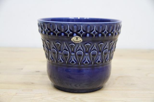 西ドイツU-Keramik社の陶器製フラワーポット。透き通るような青の色がとても美しいです。