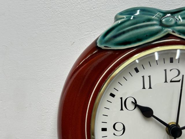 ドイツ製ヴィンテージ・陶器製の掛時計は1970年代の頃のもの。トマトかりんごでしょうか♪ キッチンやダイニングにピッタリの掛時計です。