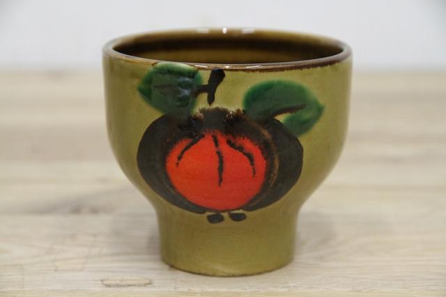 ハンドペイントで彩られたりんごが印象的なフリーカップ。裏に「GALLO CALVADOS」の刻印がプリントされており、ドイツVILLEROY & BOCH社のシリーズのひとつのようです。植物との相性もいいので、鉢カバーとしてお使いいただくのもおススメです。