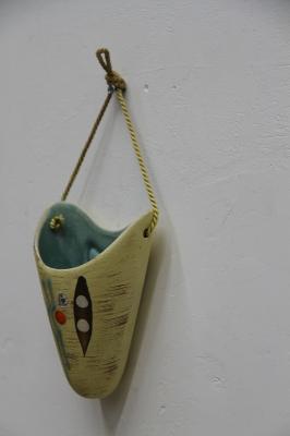 1960-70年代製ドイツのU-Keramik社のハンギングベースです。陶器製で、壁に付く面はしっかりと安定するつくりになっています。