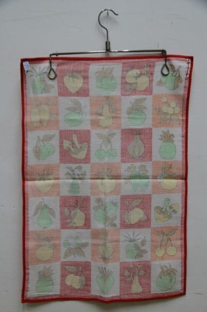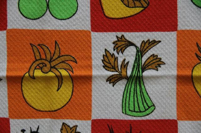 1970年代製のレトロなキッチンタオルです。キッチンを賑やかにしてくれるレトロプリントがとっても華やか。デットストック品です。