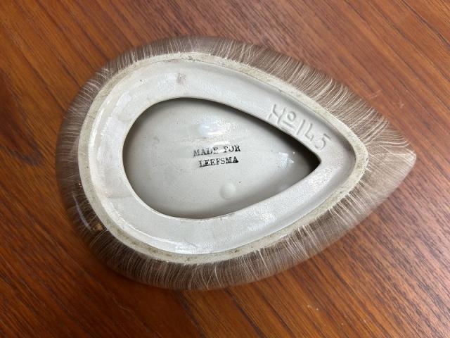 1950年代頃のヴィンテージ陶器製の灰皿です。裏にはMADE FOR LEEFSMAの刻印ありです。ミッドセンチュリー期の存在感あるデザインに惹かれます。お部屋のアクセントに。