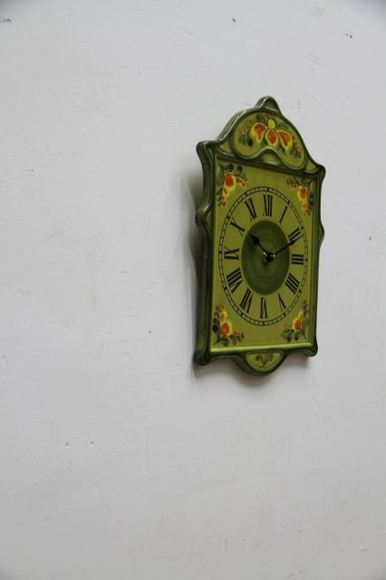 ドイツ製ヴィンテージの陶器製掛時計。ひとつの絵画のような、非常に印象的なデザインです。