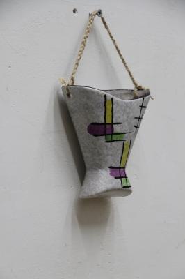 1960-70年代製ドイツのBAY社製のハンギングベースです。陶器製で、壁に付く面は平らなつくりになっています。