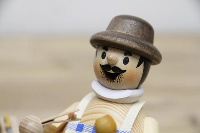 胴体と足の部分が分解できる仕組みになっていて、コーン型のお香を置いて焚くと、おじさんの口からゆっくりと煙が出てくる、ドイツの伝統的な木製のお人形です。全てのパーツは熟練の職人によって一つ一つ丁寧に作られています。専用のBOXも付属しており、ご自分や家族、友人などの職業に合わせてのギフトもオススメです。