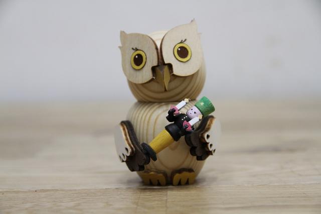 ドイツKuhnert社のフクロウの置物です。1986年にFrider Kuhnertが創業したKuhnert社はドイツ・エルツ地方の伝統工芸を大切にしつつ、現代的なデザインも積極的に取り入れながら木工の可能性に挑戦し続けているメーカーです。
