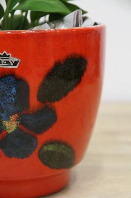 ドイツBAY社製陶器製フラワーポット。大きなフラワーモチーフは連なるように3つ、描かれています。