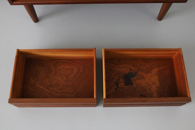 コンパクトさが際立つこちらのチェストは北欧デンマーク買付のもの。マンションや狭いスペースにもピッタリなサイズ感です。木目美しいチーク材の艶やかさが贅沢な雰囲気。引き出し収納や裏面も贅沢に材料が使われ、コンディションが良い一台です。