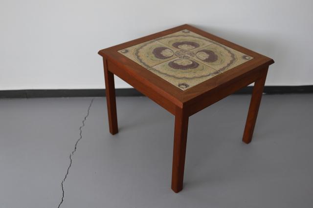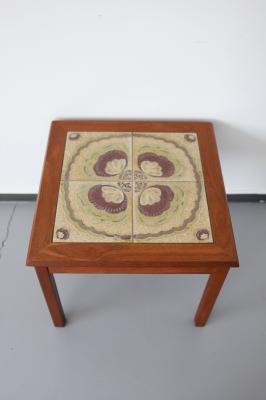 北欧デンマーク買付で見つけたタイルトップのサイドテーブルです。20cm角の大きなタイルが4枚集り大きなお花のように見えるデザインがとっても素敵です。
