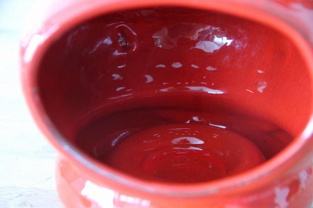ドイツで見つかった陶器製のキャンドルホルダー。赤の釉薬の色がとても印象的です。