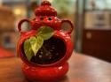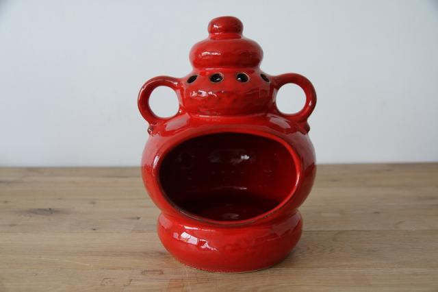 ドイツで見つかった陶器製のキャンドルホルダー。赤の釉薬の色がとても印象的です。