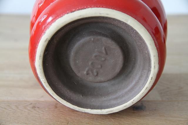 ドイツで見つかった陶器製のキャンドルホルダー。赤の釉薬の色がとても印象的です。