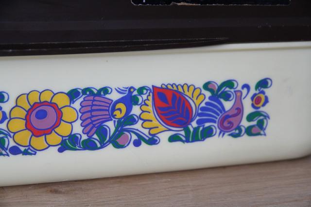 オランダ製のブレッドボックスです。レトロなフラワープリントとプラスチック素材感がとてもレトロ。たっぷりサイズな収納ボックスは使い道いろいろですね。